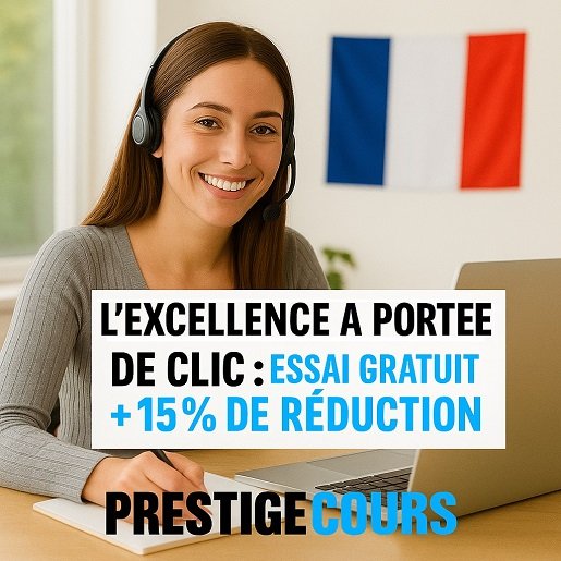 Profitez dès aujourd’hui de l’essai gratuit de 30 minutes + 15% de réduction sur votre premier pack que Prestige Cours offre actuellement à ceux qui nous rejoindrons pendant cette période de promotion exceptionnelle ! Cliquez maintenant sur ce bouton afin que votre désir de perfection ne reste pas qu’un rêve inaccessible !